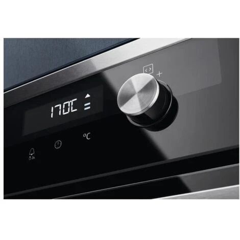 Electrolux KOCDH70X. Dimensione del forno: Media, Tipo di forno: Forno elettrico, Capacità interna forno totale: 72 L. Posizionamento dell’apparecchio: Da incasso, Colore del prodotto: Nero, Acciaio inossidabile, Tipo di controllo: Manopola, Touch. Tipo di timer: Digitale, Modalità di impostazione del timer: Tempo di fine cottura. Classe efficienza energetica: A+, Consumo energetico (convenzionale): 0,93 kWh, Consumo energetico (convezione forzata): 0,69 kWh. Tipo di lampada: Alogena