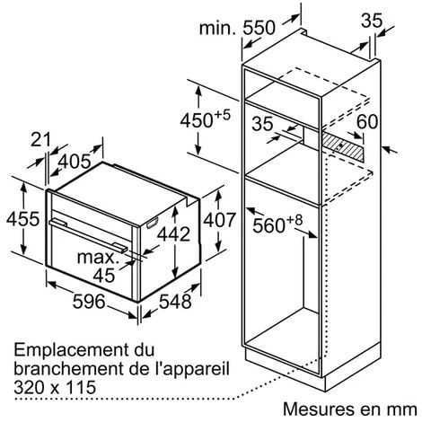 Nicchia da incasso: 450 x 560 x 550 mm