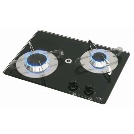 Fornello a incasso a 2 fuochi con piano in Vetro Temperato e termosicurezze.