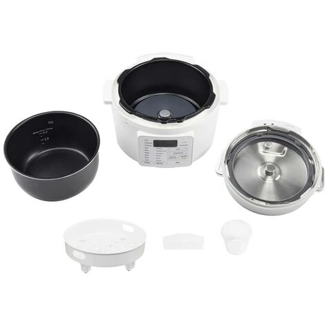 6 menu preimpostati: Pentola a cottura rapida, fornello a riso, fornello lento, vaporizzatore, macchina per lo yogurt, Hot PotPiù veloce, più silenzioso e più sicuro rispetto ai tradizionali apparecchi di cotturaTimer di ritardo fino a 14 oreFunzione di mantenimento della temperatura per un massimo di 12 ore.